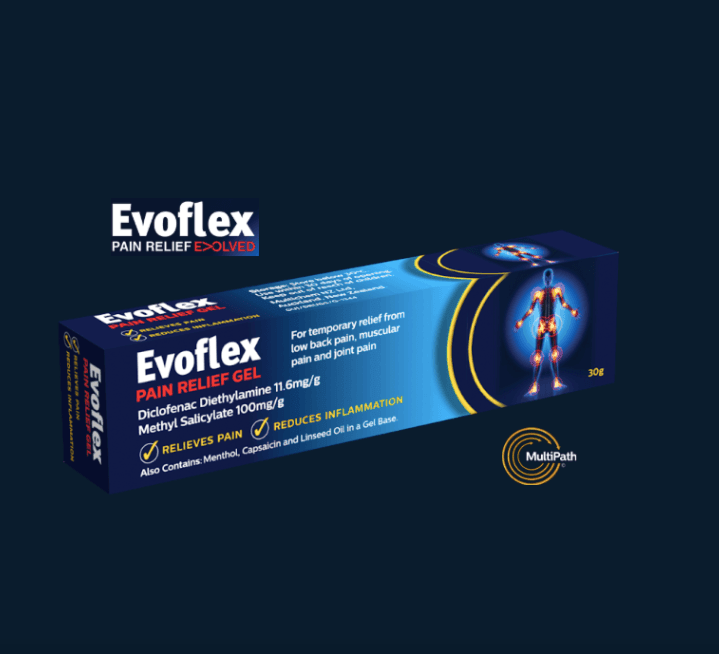 Evoflex contains 4 key ingredients including Diclofenac - a non-steroidal, anti-inflammatory drug (NSAID), Methyl Salicylate for a warming sensation that distracts from pain,