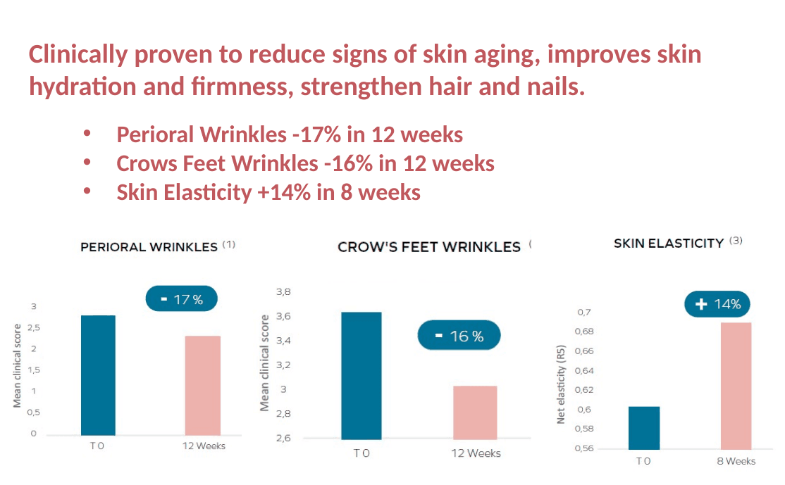 Sustainable marine collagen | Vitamin C | Vitamin E | Vitamin A | Biotin